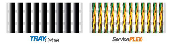 By contrast, ServicePlex allows up to 30% more conductors in the same tray space. The twisted cable keeps all conductors uniform, and the integrated ground eliminates separate ground management. This maximizes existing cable tray critical in retrofit installs and expansions.